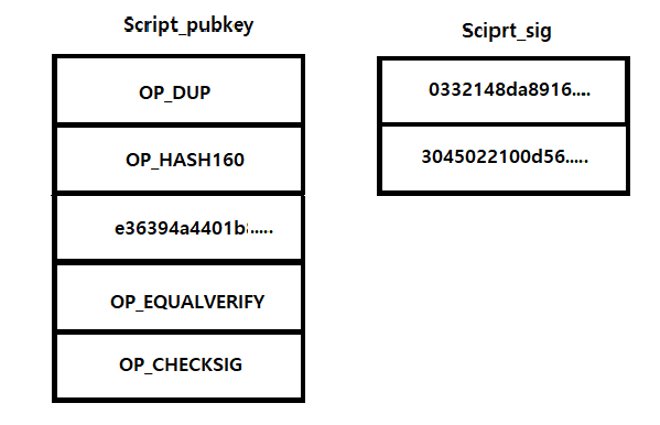 1) 먼저 스택에 서명과 공개키를 순서대로 쌓는다.
