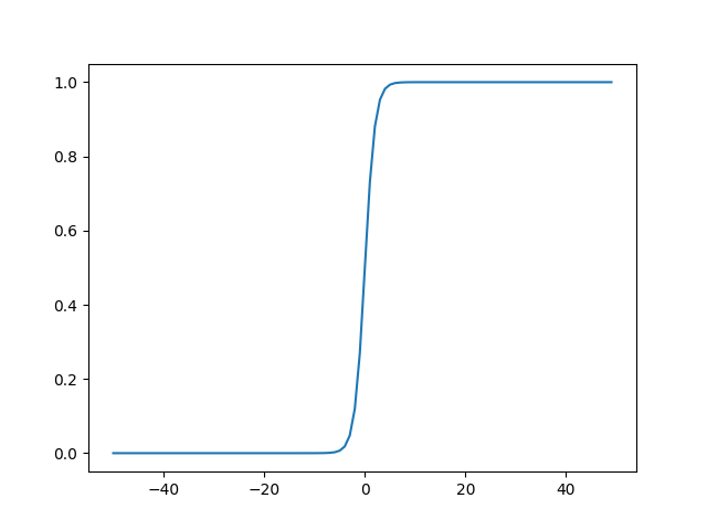 언뜻보면 계단함수와 생김새가 비슷하지만 가로축 0 인근에서 약간의 곡선 형태가 관찰된다.