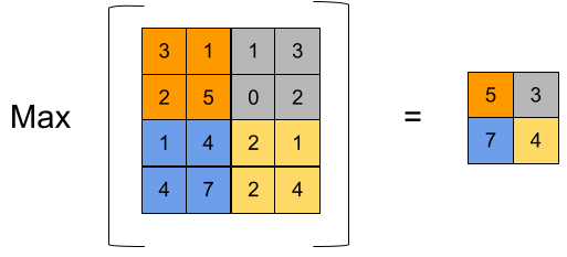 또 하나의 특징맵을 만들어내는 과정을 말한다. 위 그림에서는 2x2 구간마다의 최대값을 뽑아내는