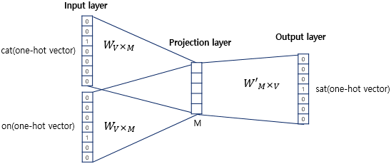 신경망에 입력되는 단어의 원핫벡터는 (1, vocab_size) 형상을 띄고 있으므로
